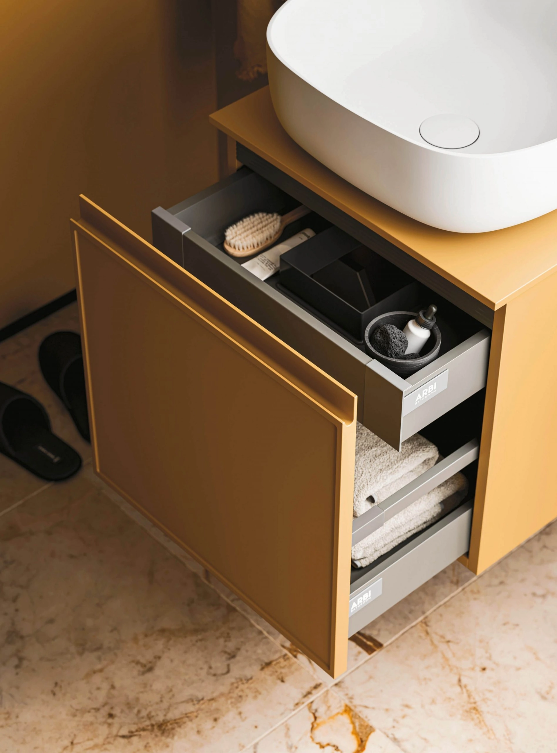Ottieni informazioni sull'arredo bagno moderno: mobili bagno sospesi in laccato opaco come il modello Decor Cozy yellow di Arbi ti attendono.